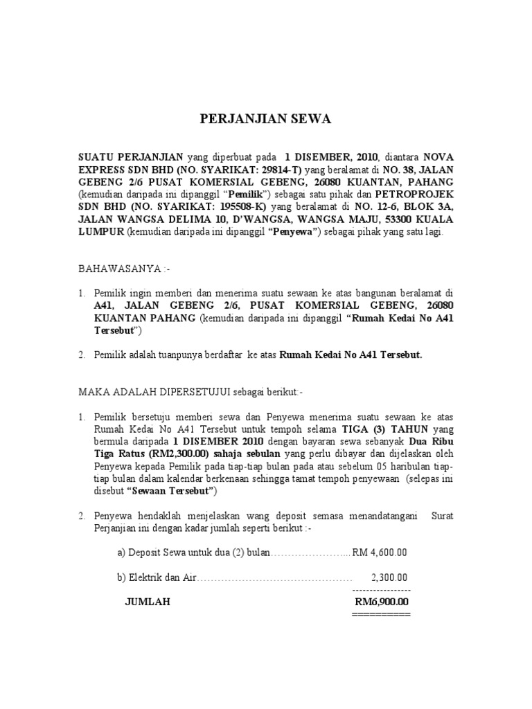 8 Contoh Surat Perjanjian Sewa Ruko Kios Di Pasar Tempat Usaha Pdf Docx Surat Ruko Membaca