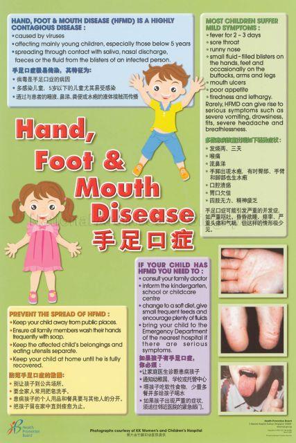 Symptoms of hand foot and mouth disease usually include fever mouth sores and skin rash. Understanding hand foot mouth disease hfmd is a generally mild and self limiting childhood disease that can spread wherever children congregate. Hfmd is endemic in singapore and can affect all ages but young children are more susceptible especially those below 5 years of age who constitute the at risk population. This is followed a day or two later by flat discolored spots or bumps that may blister on the hands feet and mouth and occasionally buttocks and groin.