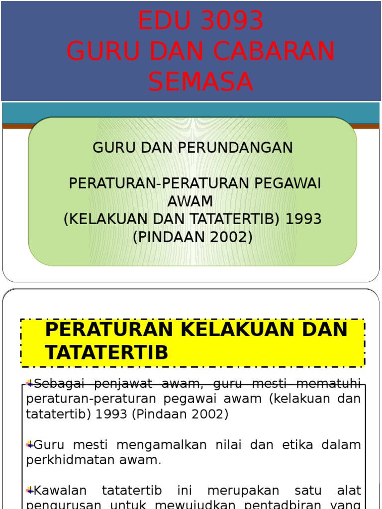 Peraturan Pegawai Awam Kelakuan Tatatertib 1993 Pindaan 2002 Pptx Powerpoint