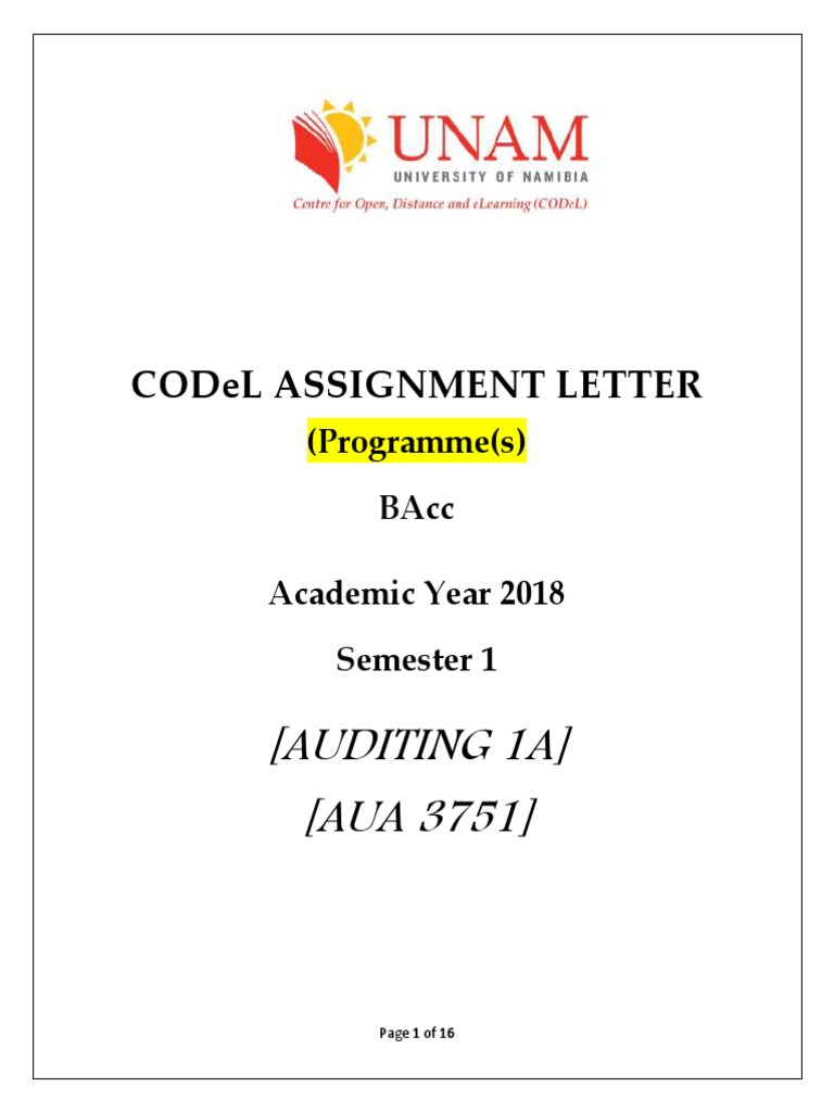 2018 Distance Assignments Auditing 1a Aua3751 With Assignment 2 Audit Internal Control
