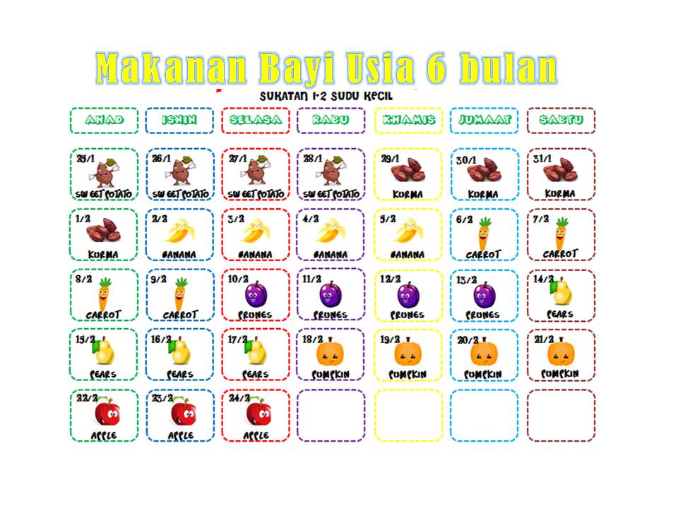 Makanan Pelengkap Jadual Pemakanan Bayi 6 Bulan
